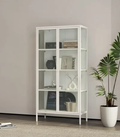 יחידת מדפים ממתכת בשילוב דלתות זכוכית דגם 209 בצבע לבן