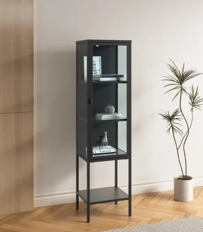 יחידת מדפים ממתכת בשילוב דלת זכוכית דגם 210 בצבע שחור