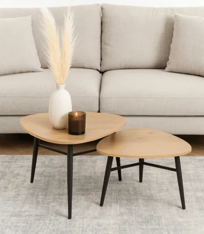 זוג שולחנות קפה לסלון בצבע עץ אלון דגם 5008