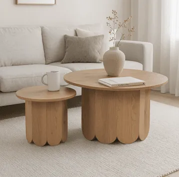 זוג שולחנות קפה עגולים דגם 5015 בצבע עץ אלון