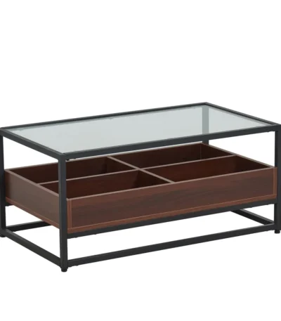 שולחן קפה מלבני לסלון בשילוב זכוכית דגם 5018 בצבע עץ שחור