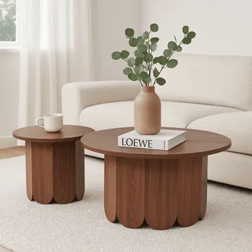 זוג שולחנות קפה עגולים דגם 5015 בצבע עץ אגוז
