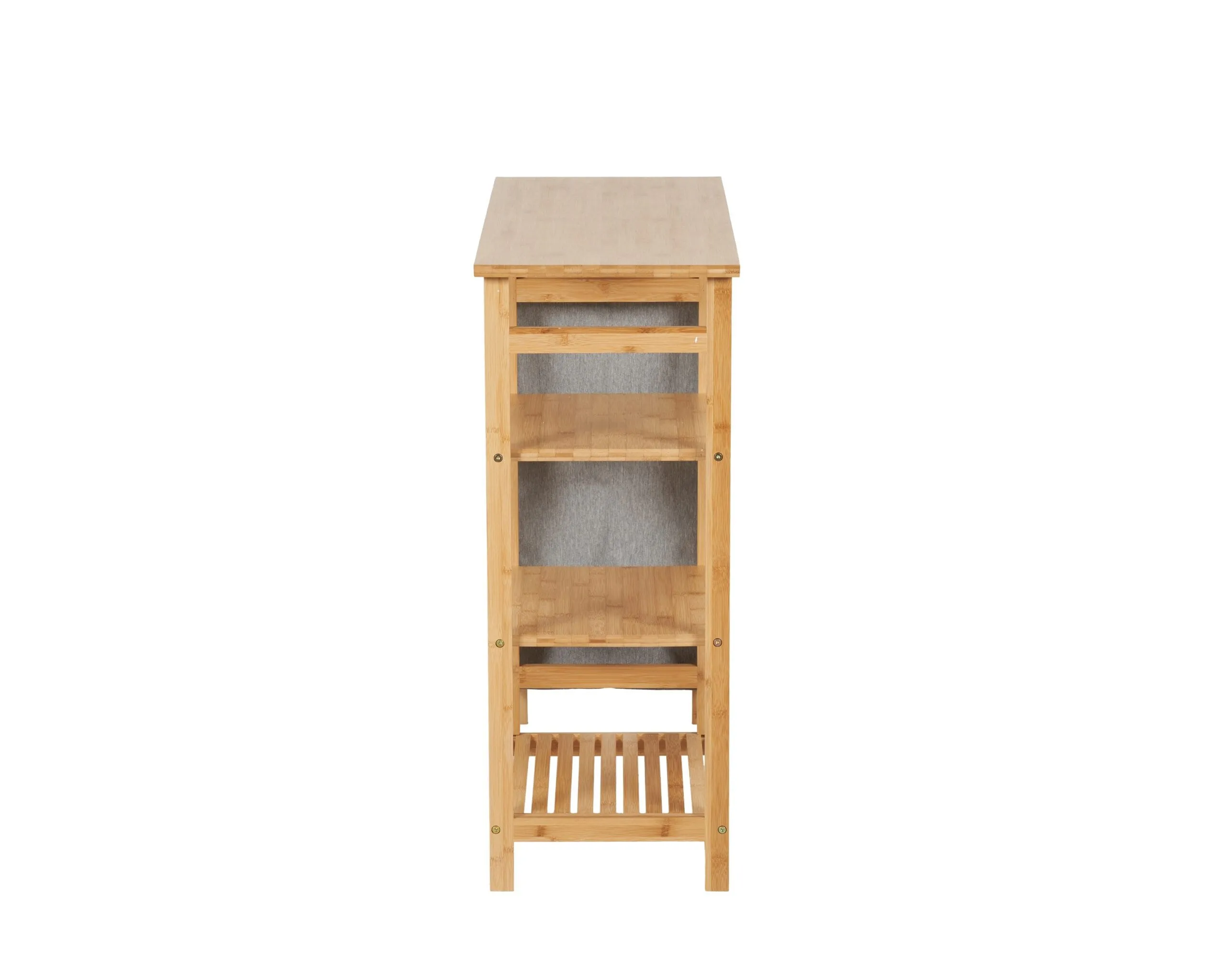 כוננית רב־תכליתית בעיצוב מודרני ונקי, המשלבת 4 מדפים פתוחים לאחסון נגיש ומסודר יחד עם סל כביסה מרווח המיועד לשמירה על בגדים לפני כביסה. עשויה מעץ במבוק טבעי, הכוננית מציעה מראה חמים ואסתטי לצד עמידות גבוהה במיוחד בפני לחות – מושלם לשימוש בחדרי רחצה.
