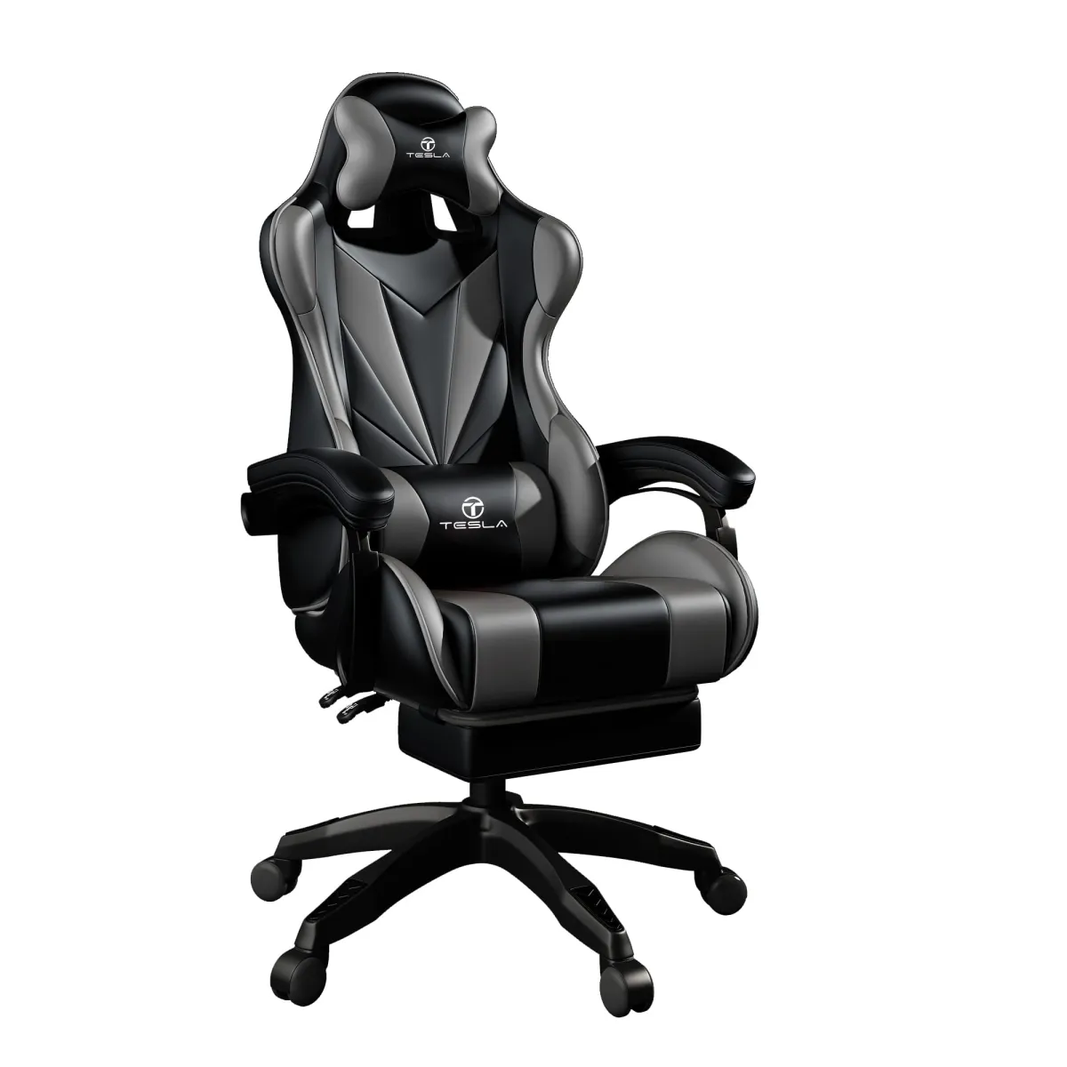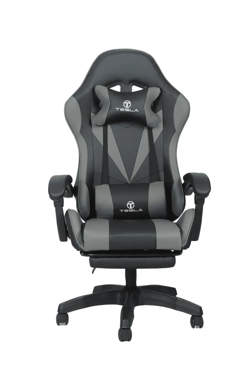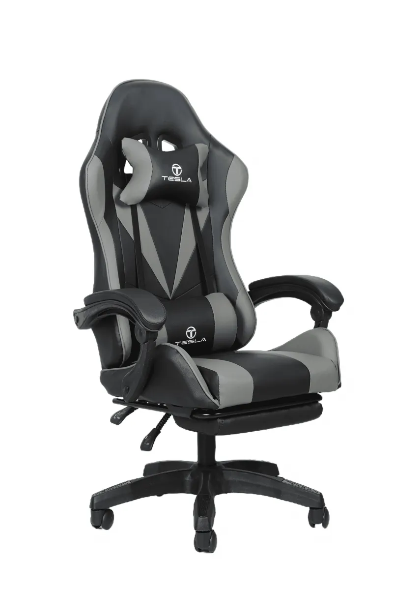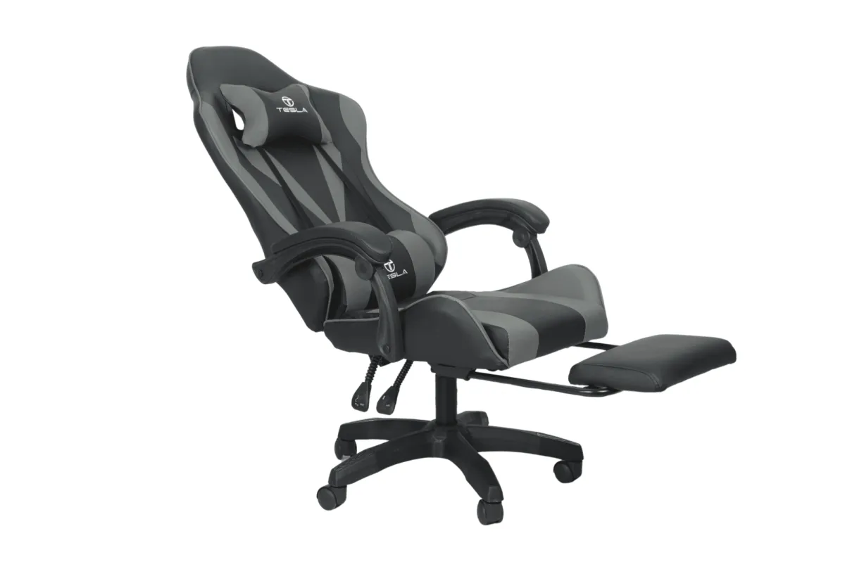 כיסא גיימינג כולל כרית עיסוי חשמלית והדום נפתח לרגליים Tesla דגם 7001 בצבע אפור