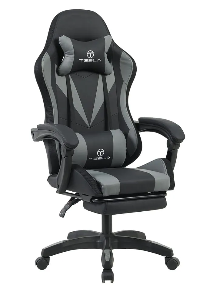 כיסא גיימינג כולל תאורת LED וכרית עיסוי חשמלית והדום נפתח לרגליים Tesla דגם 7031 בצבע אפור