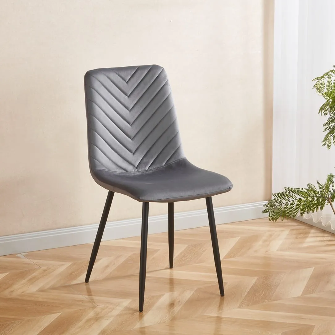 כיסא לפינת אוכל דגם 6129 בצבע אפור מבית Step Up – ריפוד קטיפה יוקרתי, רגלי מתכת עמידות ונוחות ארגונומית. אידיאלי לבית או לבית קפה. כולל הרכבה עצמית קלה.