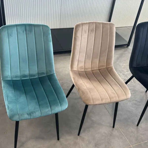 המושב המרופד עשוי בד קטיפה המתנקה בקלות, מה שמעניק תחושת רכות ונעימות בזמן הישיבה. רגלי המתכת מספקות בסיס יציב ותומך, והכיסא מיועד לנשיאת משקל של עד 140 ק”ג – עדות לאיכות החומרים ולבנייה המקצועית. המבנה הארגונומי תומך בגב ומאפשר ישיבה ממושכת ללא תחושת אי־נוחות, מה שהופך אותו לבחירה מצוינת לשולחנות אוכל, עמדות עבודה ואזורי אירוח.