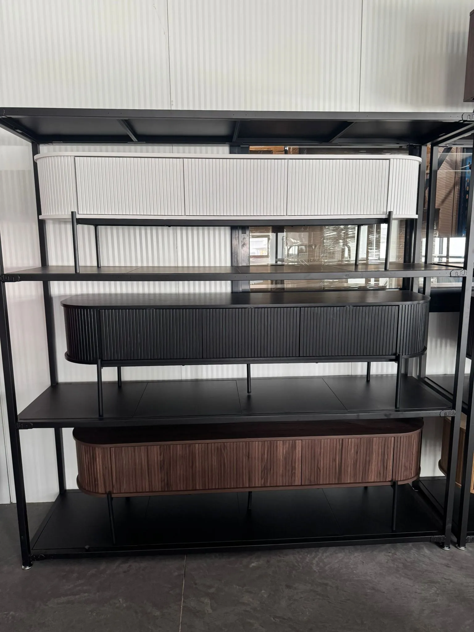 רגלי מתכת בצביעה בתנור לעמידות מקסימלית ( המזנון ניתן גם להנחה על רגליים ולתלייה כאחד)