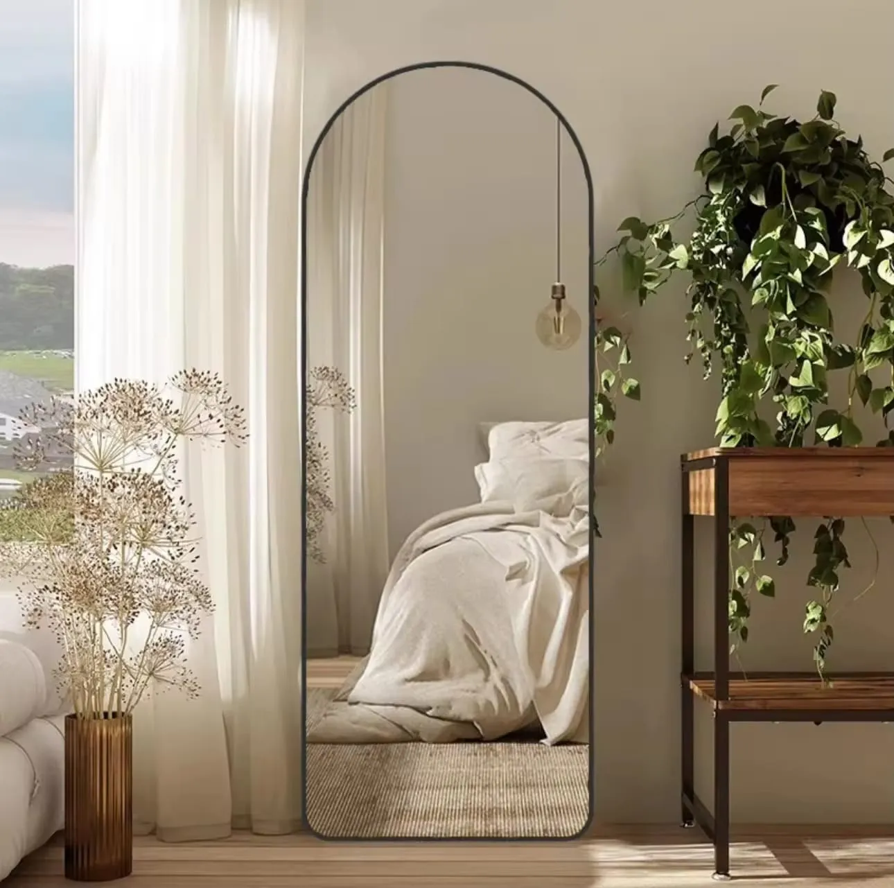 מראת גוף חצי אובלית עומדת/נתלת בצבע שחור דגם 9006