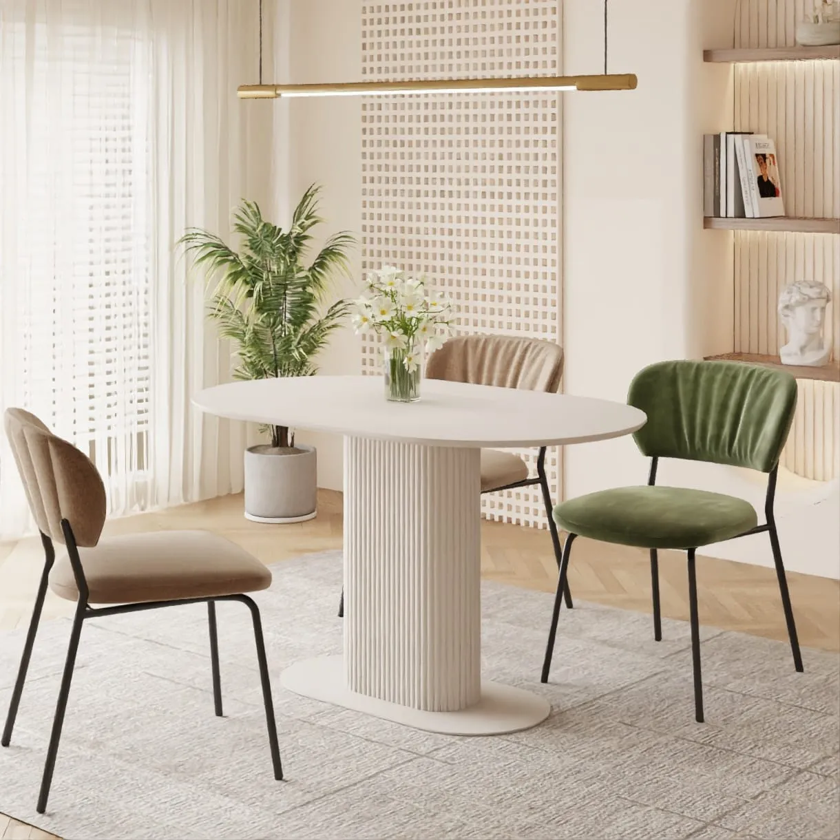 הצורה האובלית מרככת קווים חדים ומעודדת שיחה סביב השולחן.
