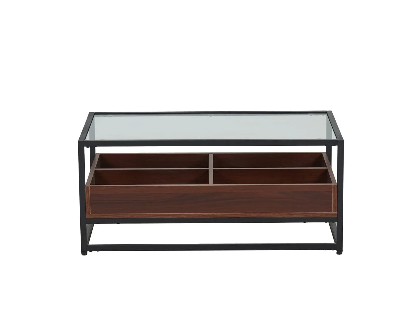 שולחן קפה מלבני דגם 5018 – עץ אגוז יוקרתי בשילוב זכוכית ומתכת