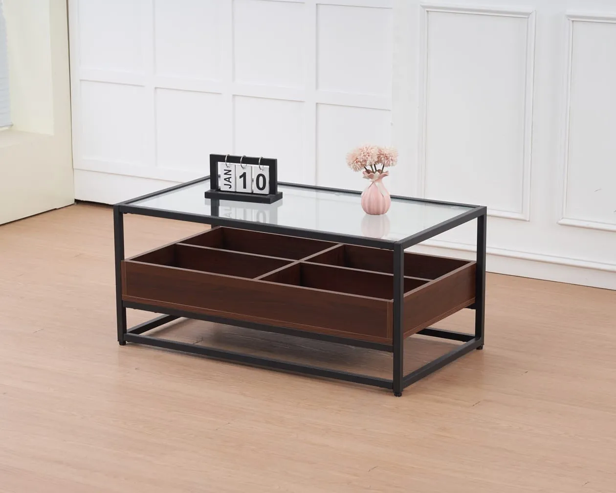 שולחן קפה מלבני לסלון בשילוב זכוכית דגם 5018 בצבע עץ אגוז
