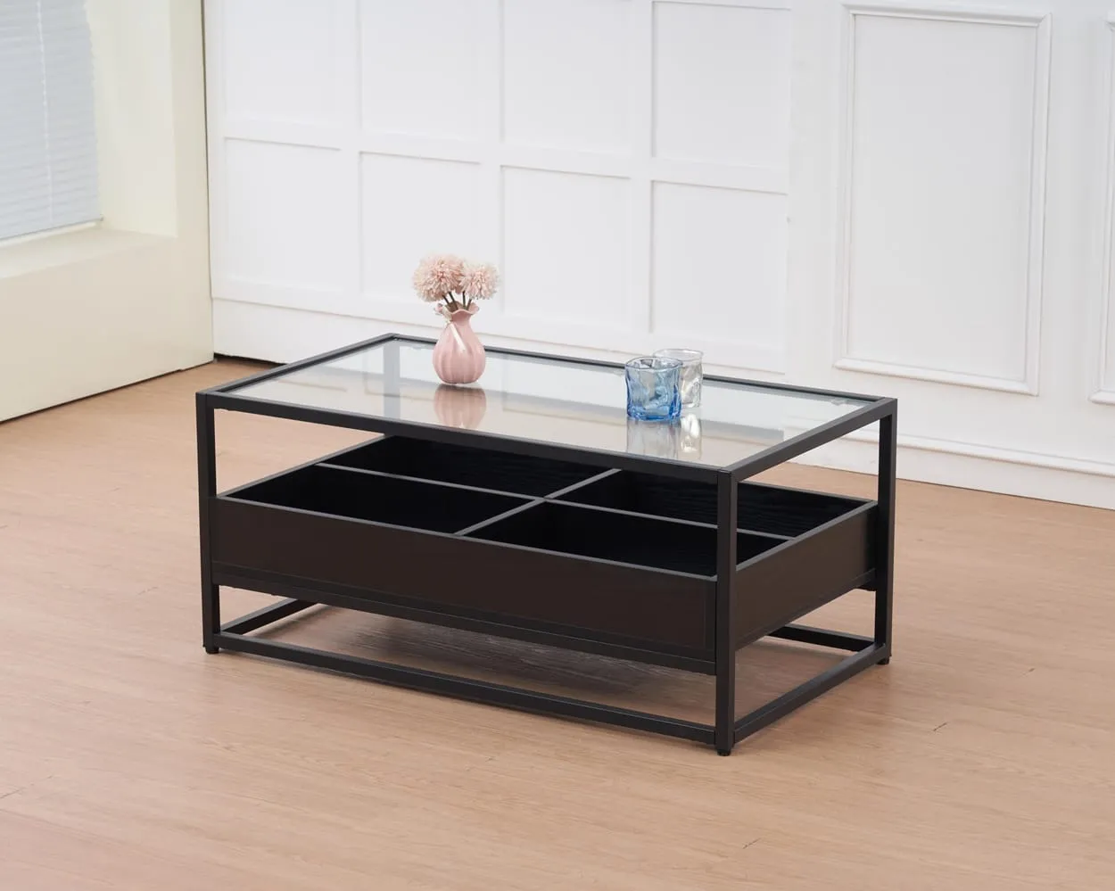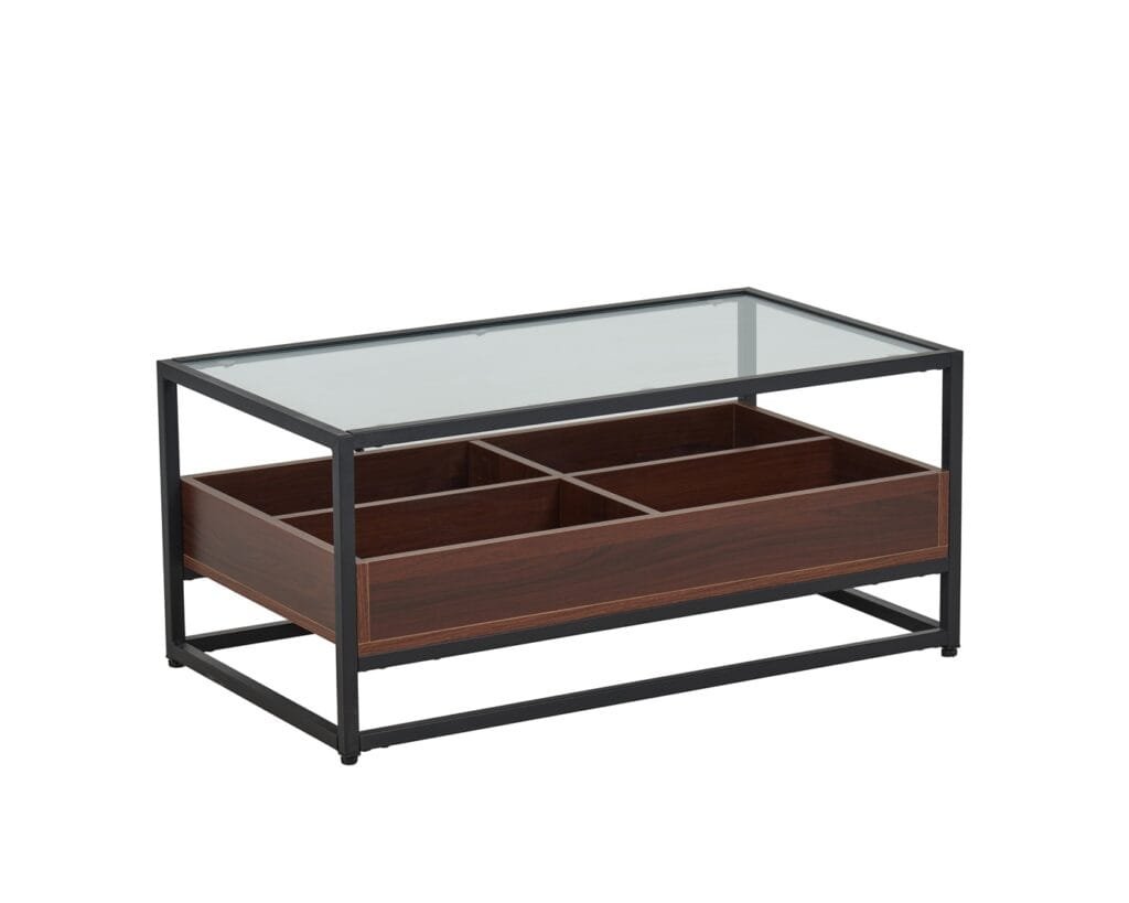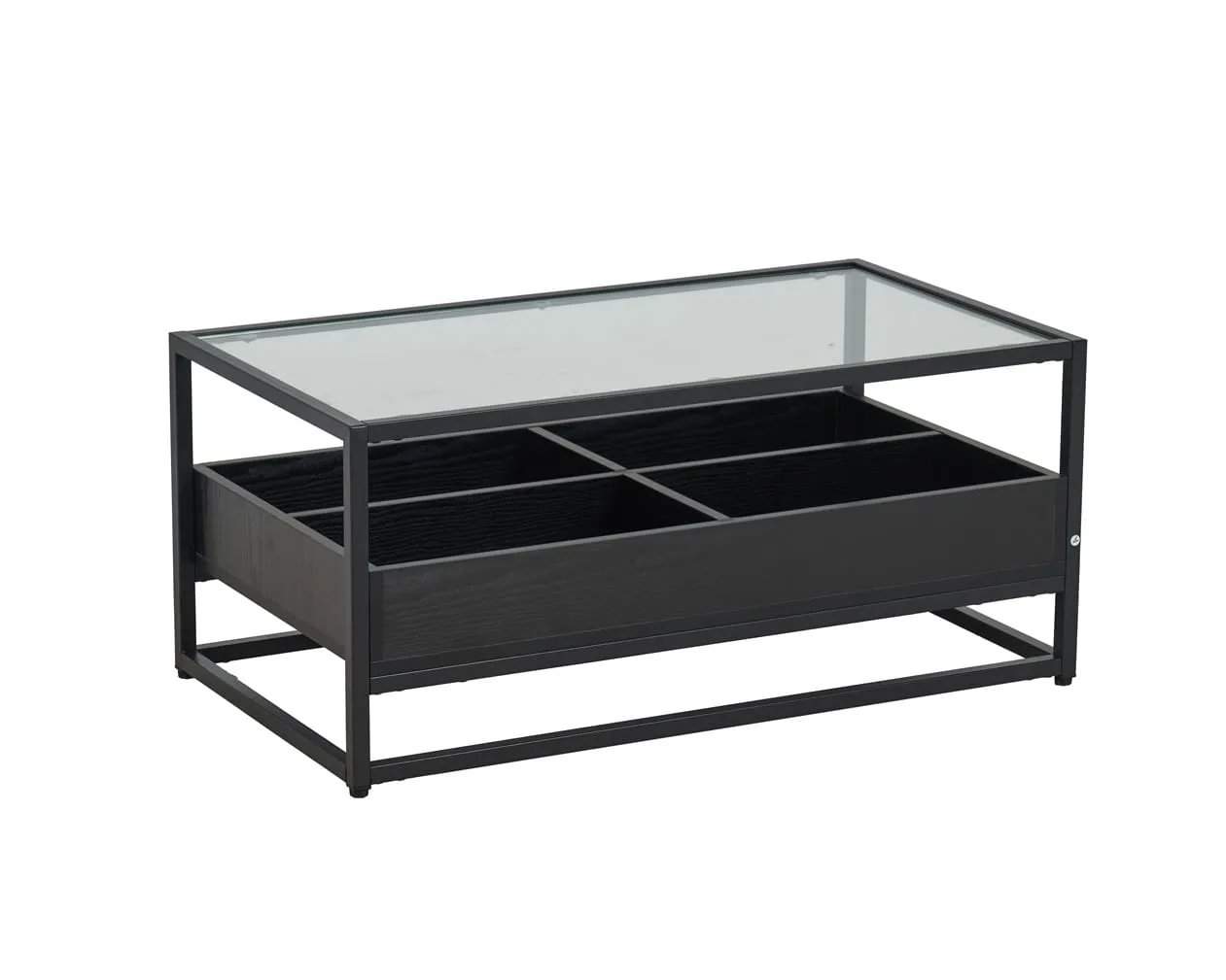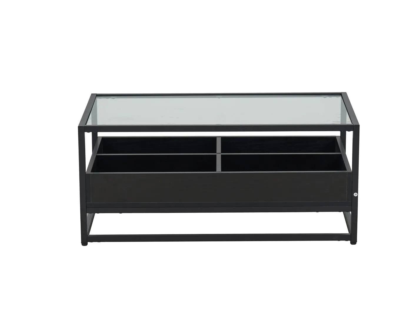 שולחן קפה דגם 5018 שחור משלב מתכת, MDF וזכוכית מחוסמת. בנוסף, כולל 4 תאי אחסון לניצול חכם של חלל הסלון. כך תיהנו משולחן מודרני ופרקטי לשנים.
