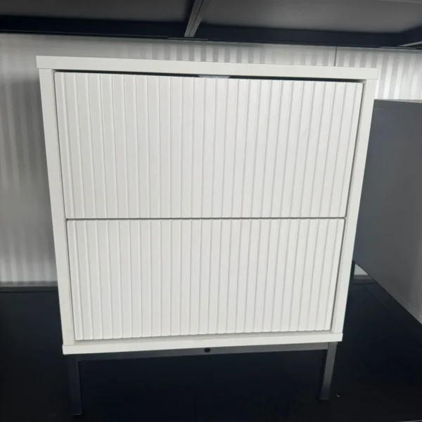 השידה כוללת שתי מגירות הנפתחות בלחיצה קלה, שמאפשרות גישה נוחה לחפצים אישיים. בזכות המנגנון החכם, כל מגירה נפתחת בצורה חלקה, מה שמקל על השימוש גם בחדרים קטנים או צפופים. כך ניתן לשמור על סדר וניקיון מבלי לוותר על נוחות.