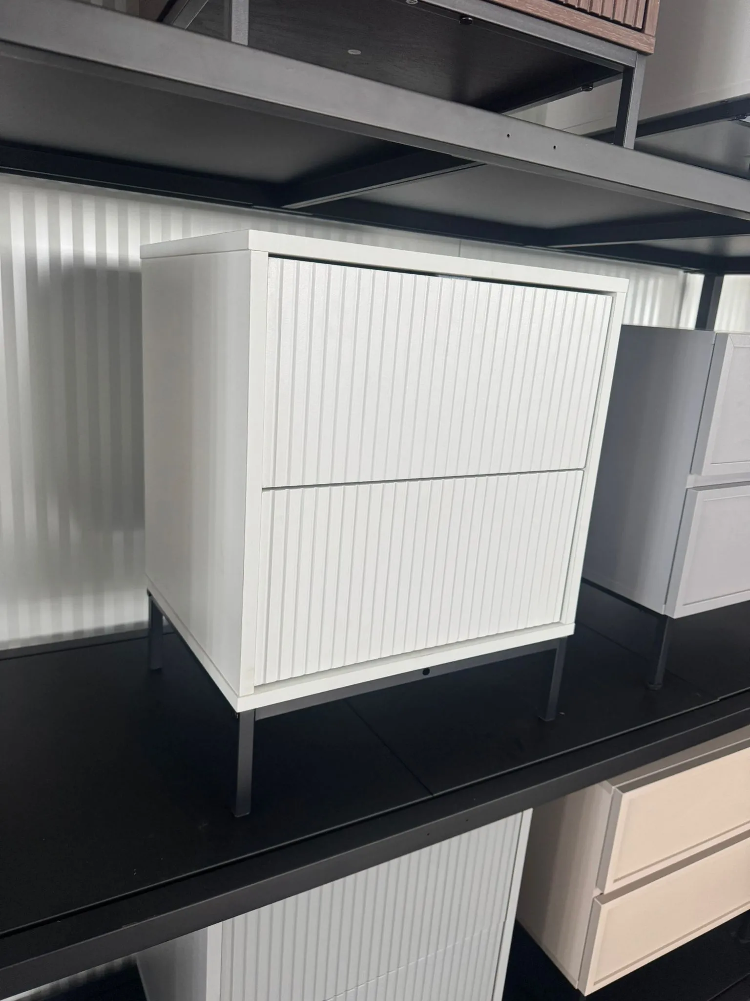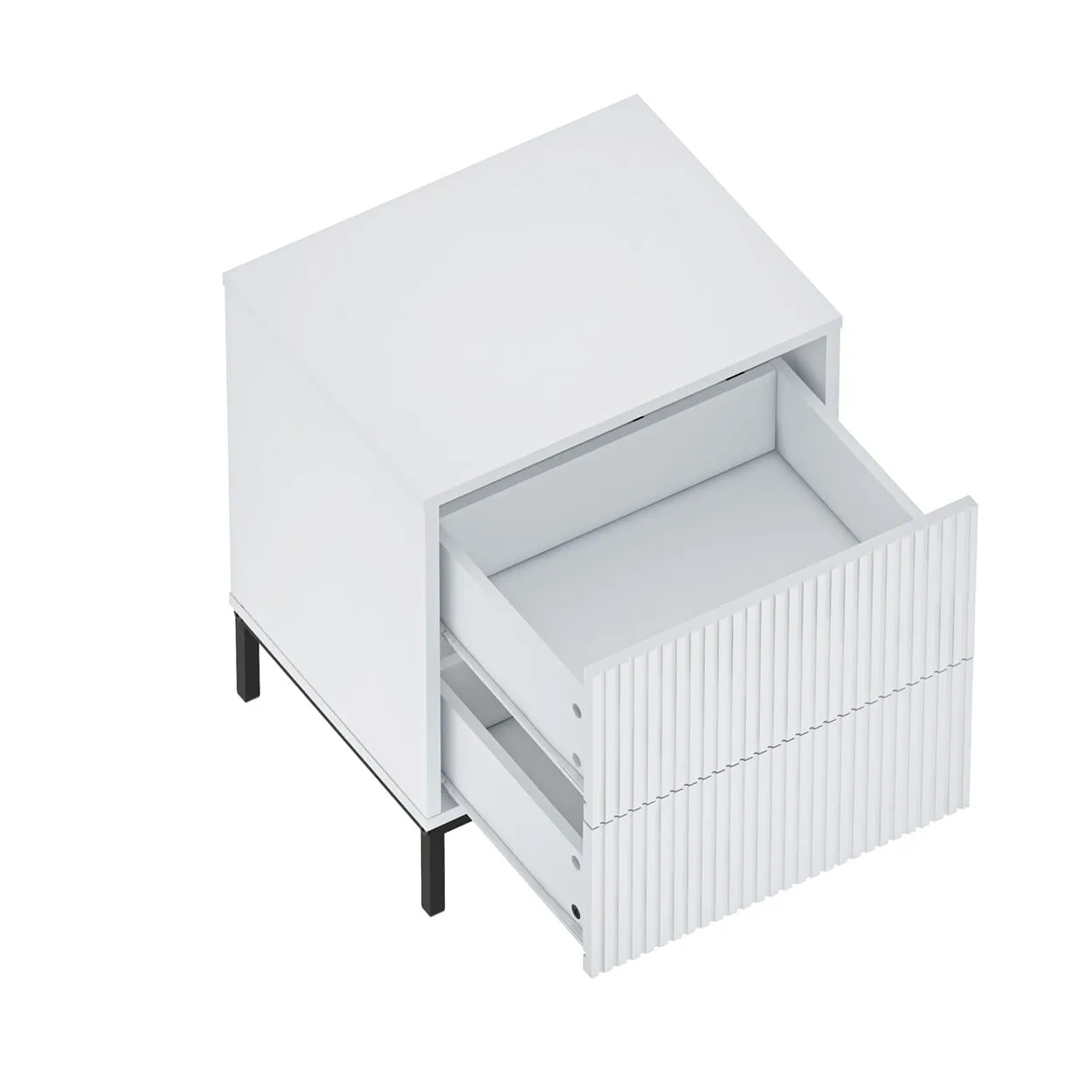 השידה כוללת שתי מגירות הנפתחות בלחיצה קלה, שמאפשרות גישה נוחה לחפצים אישיים. בזכות המנגנון החכם, כל מגירה נפתחת בצורה חלקה, מה שמקל על השימוש גם בחדרים קטנים או צפופים. כך ניתן לשמור על סדר וניקיון מבלי לוותר על נוחות.