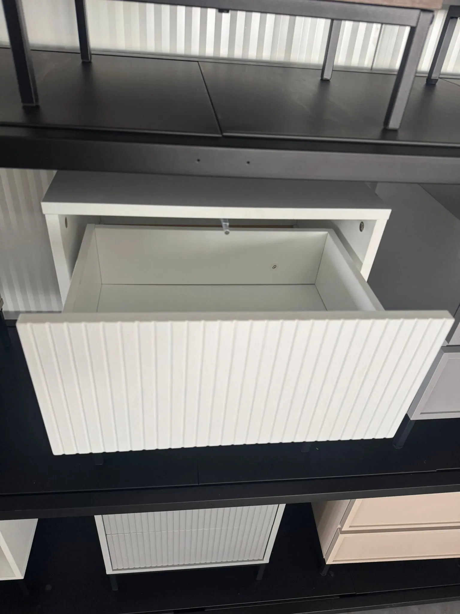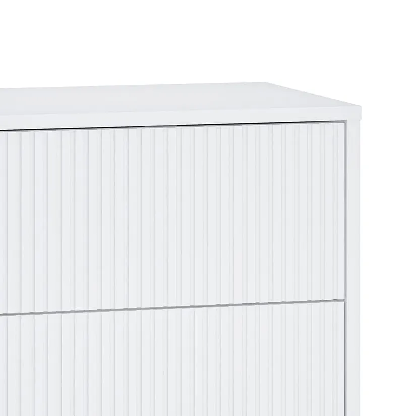 השידה עשויה מ־פלטת MDF איכותית בציפוי PVC חלק. MDF עדיף על סיבית או שבבי עץ, בזכות חוזקו ועמידותו לאורך זמן. לכן, השידה שומרת על יציבותה גם בשימוש ממושך. בנוסף, הציפוי הלבן מוסיף לה מראה אלגנטי שקל לנקות ולתחזק.