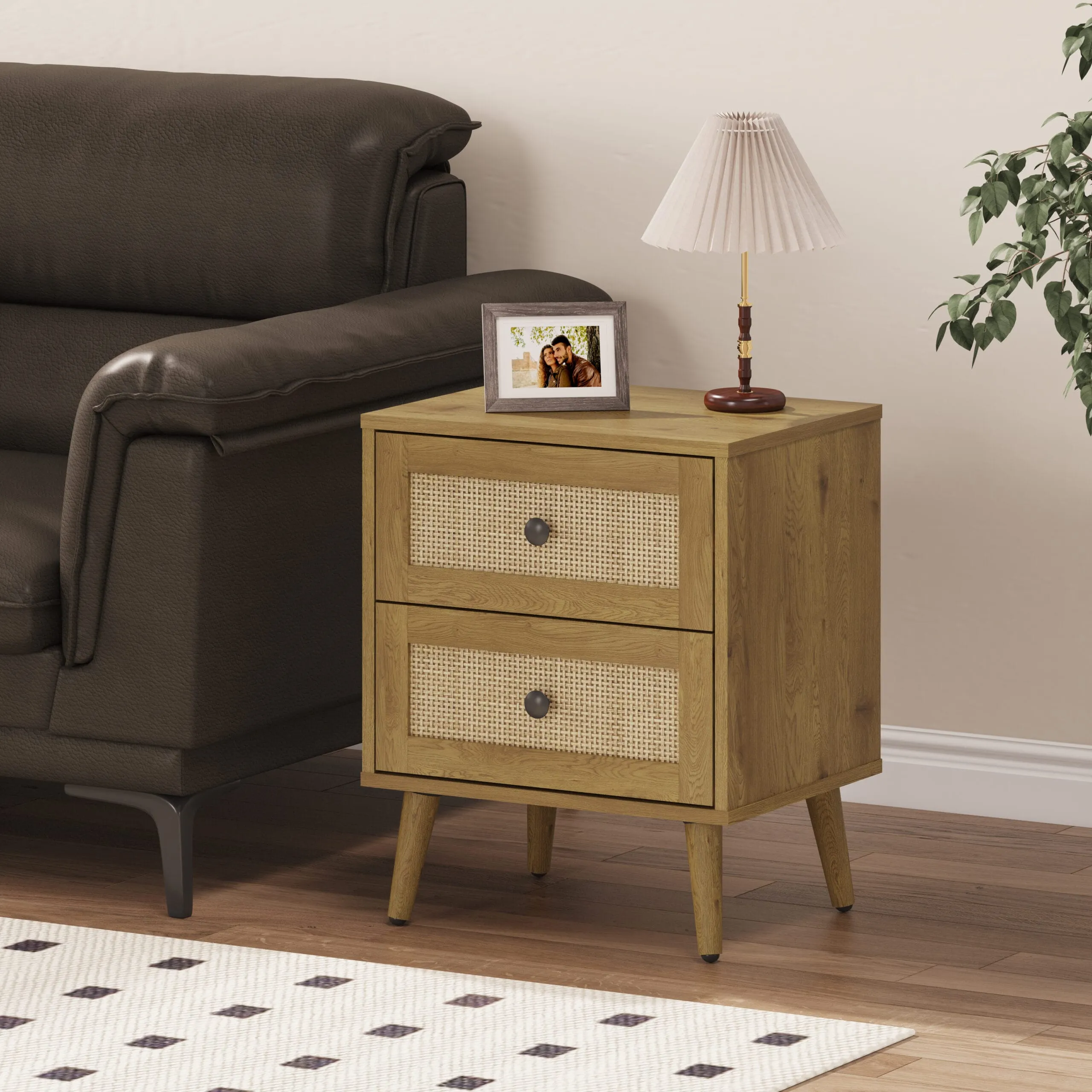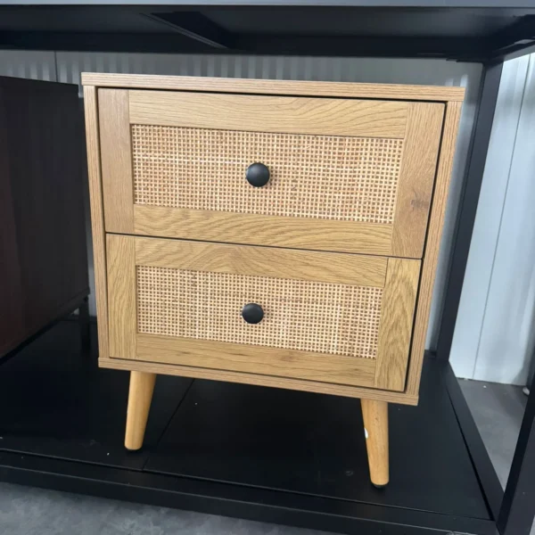 שידת לילה מעוצבת לצד המיטה בגימור ראטן דגם 3075