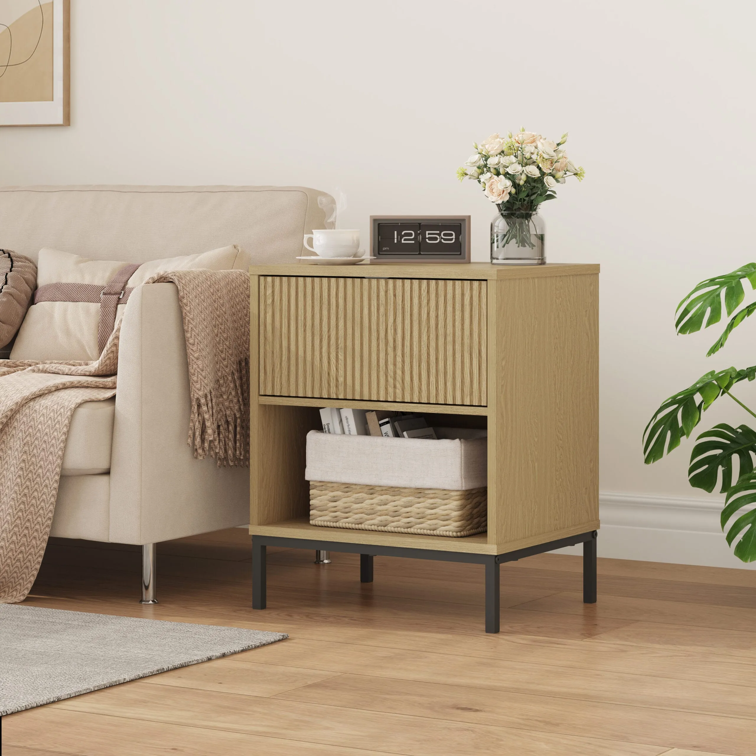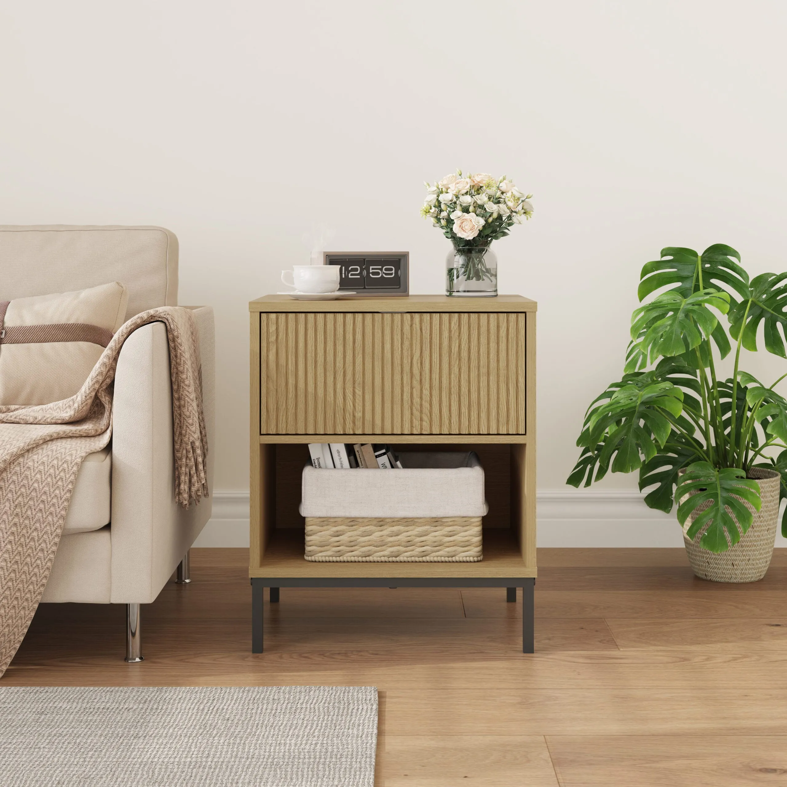 שידת לילה מעוצבת לצד המיטה בצבע עץ אלון דגם 3073