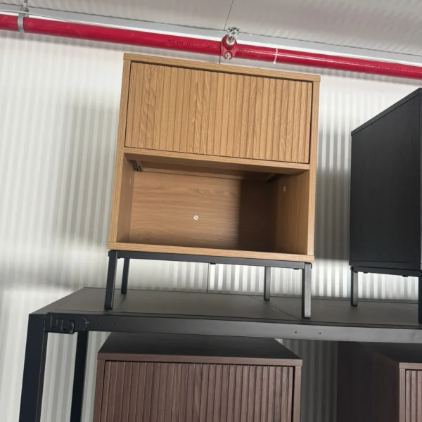 • עשויה פלטת MDF בציפוי PVC דמוי עץ בצבע אלון – עמידה, איכותית ונשמרת לאורך זמן