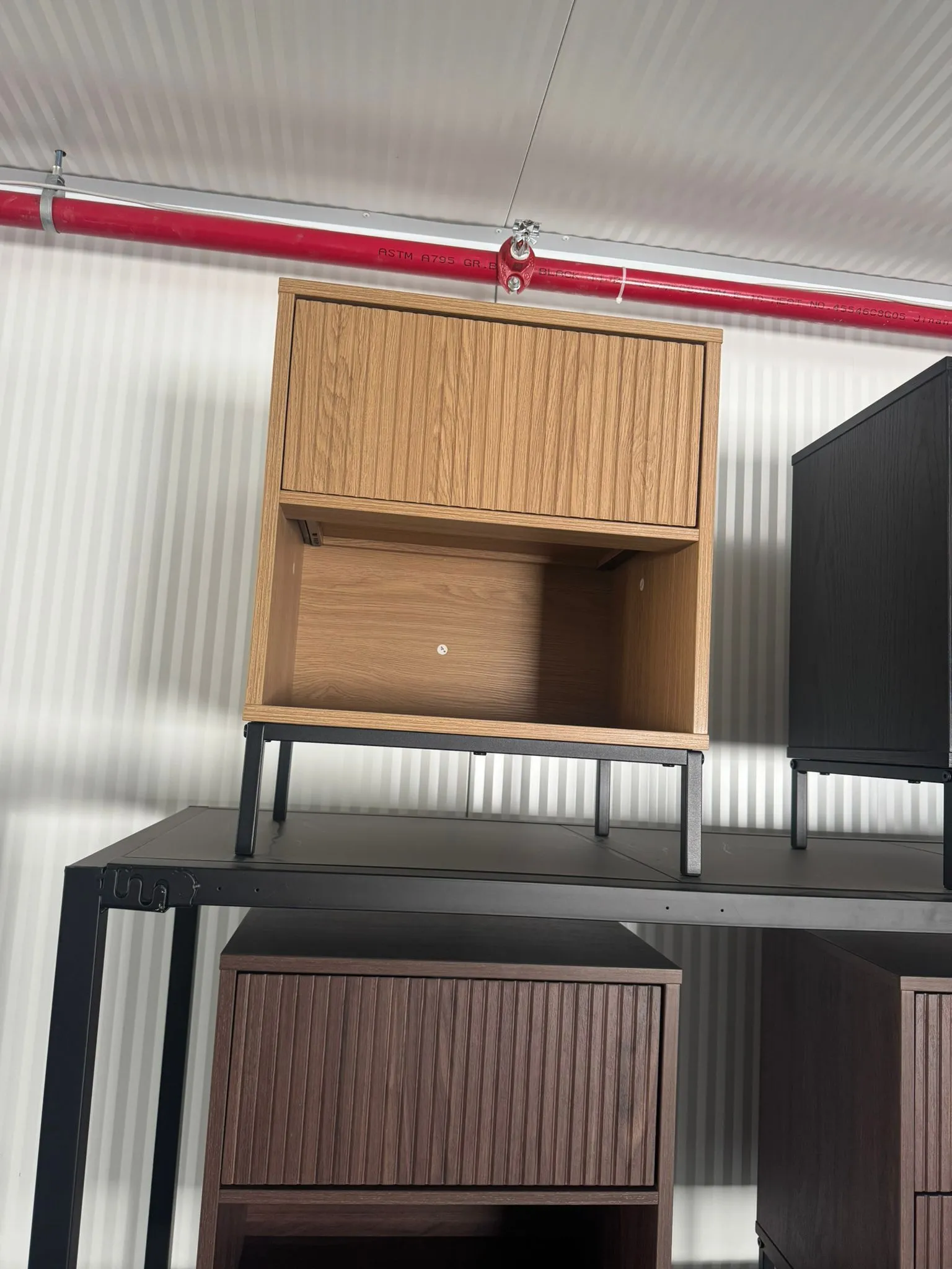 רגלי מתכת צבועות בתנור לעמידות לאורך שנים (המוצר מגיע עם רגלי במה אשר רצות לכל אורך תחתית המוצר ליציבות מירבית)