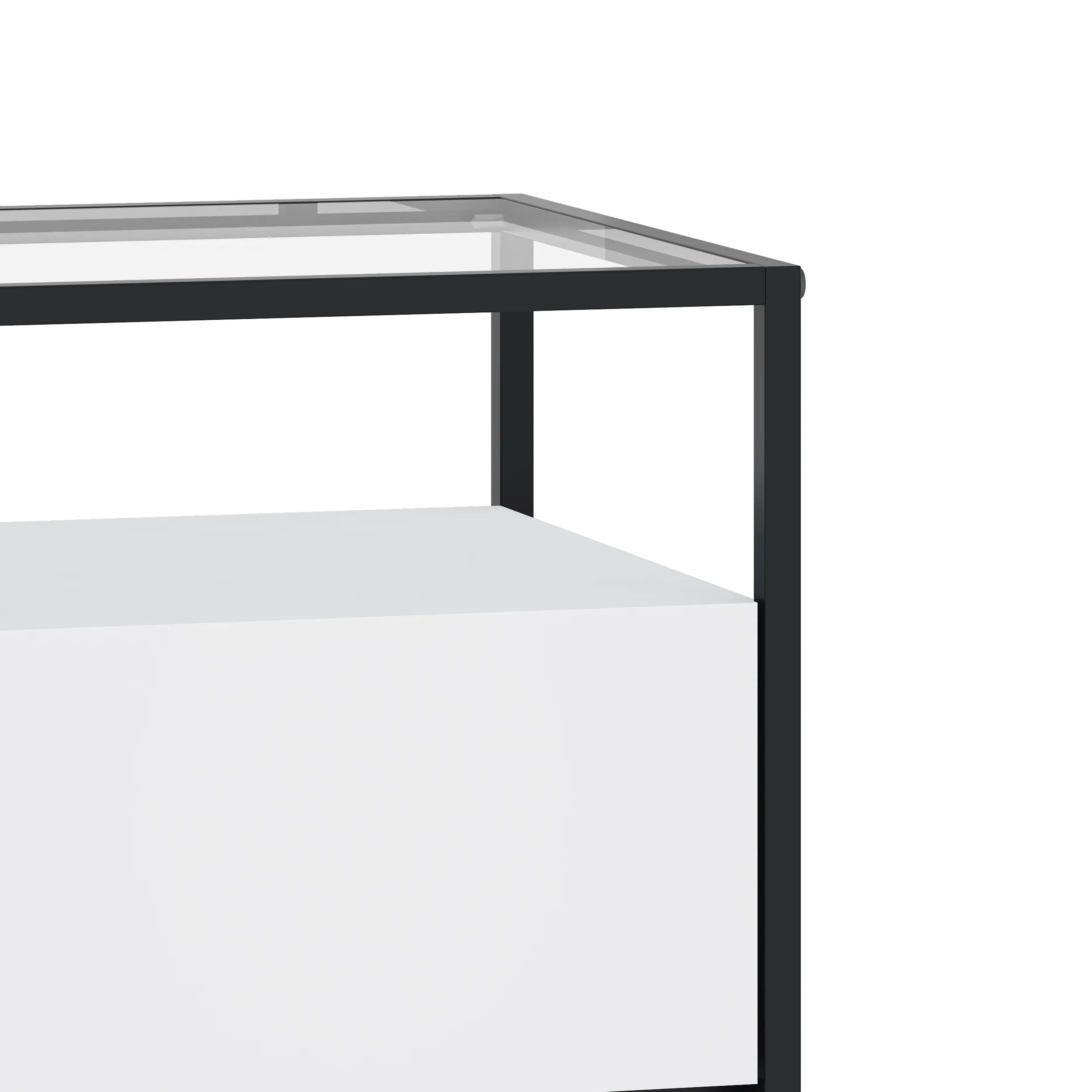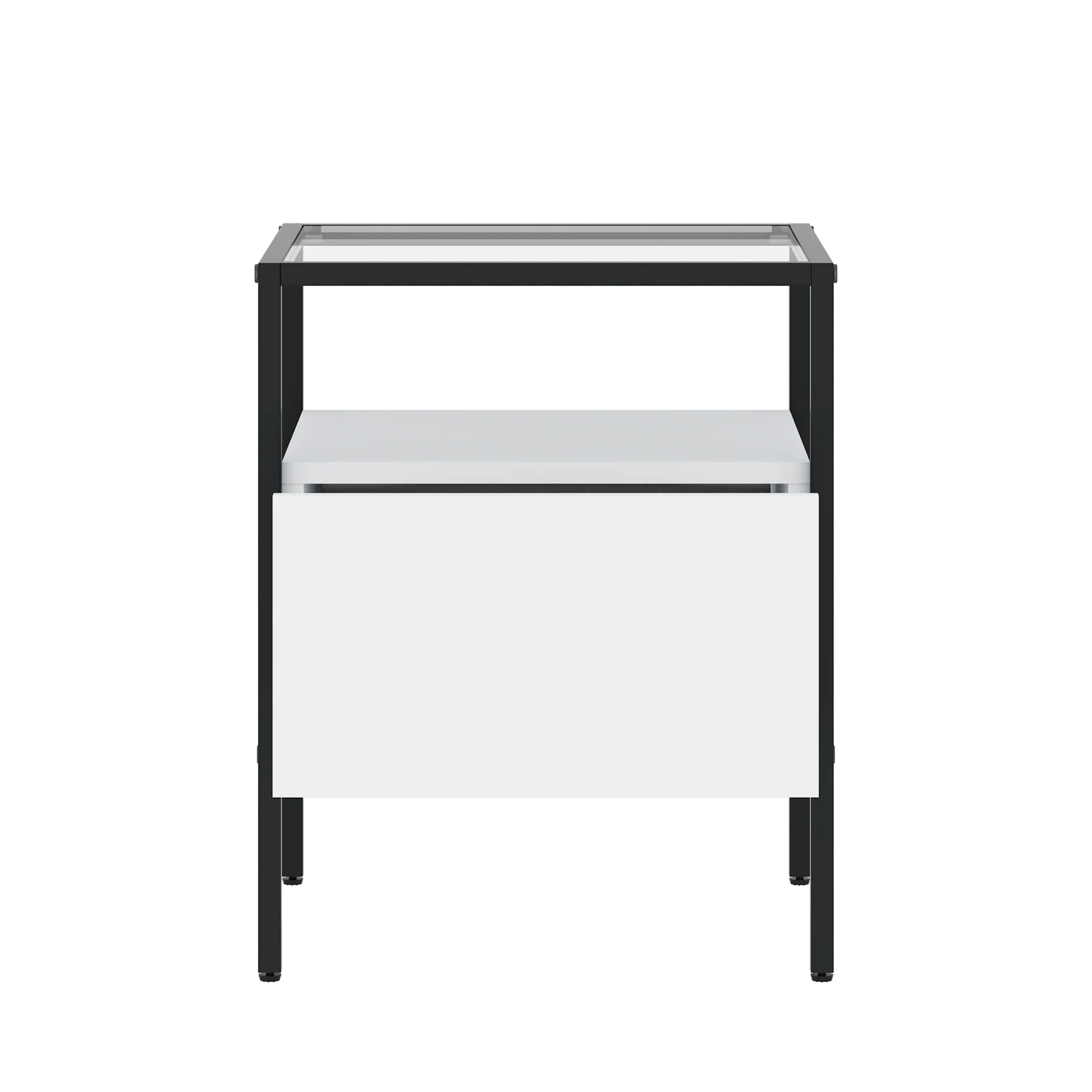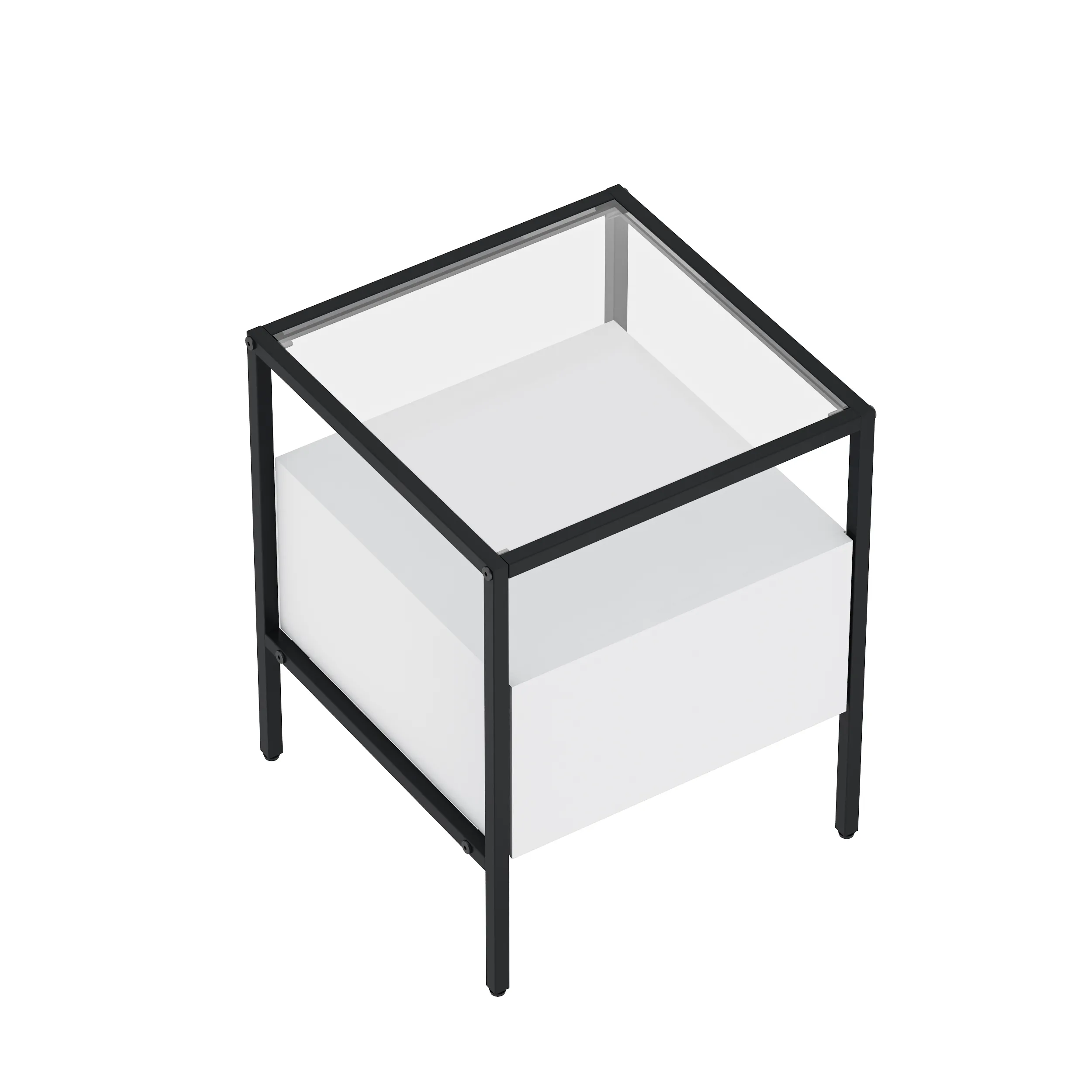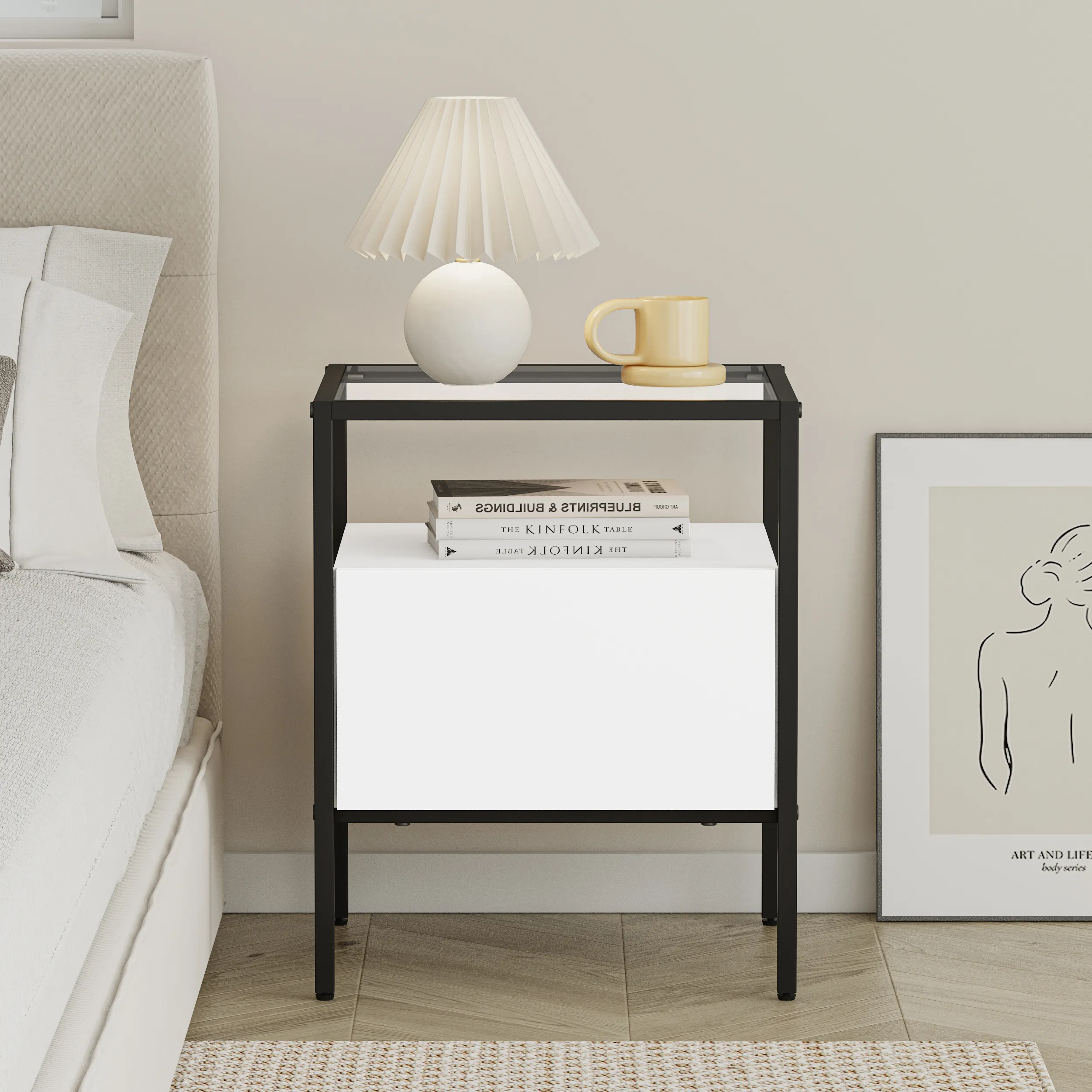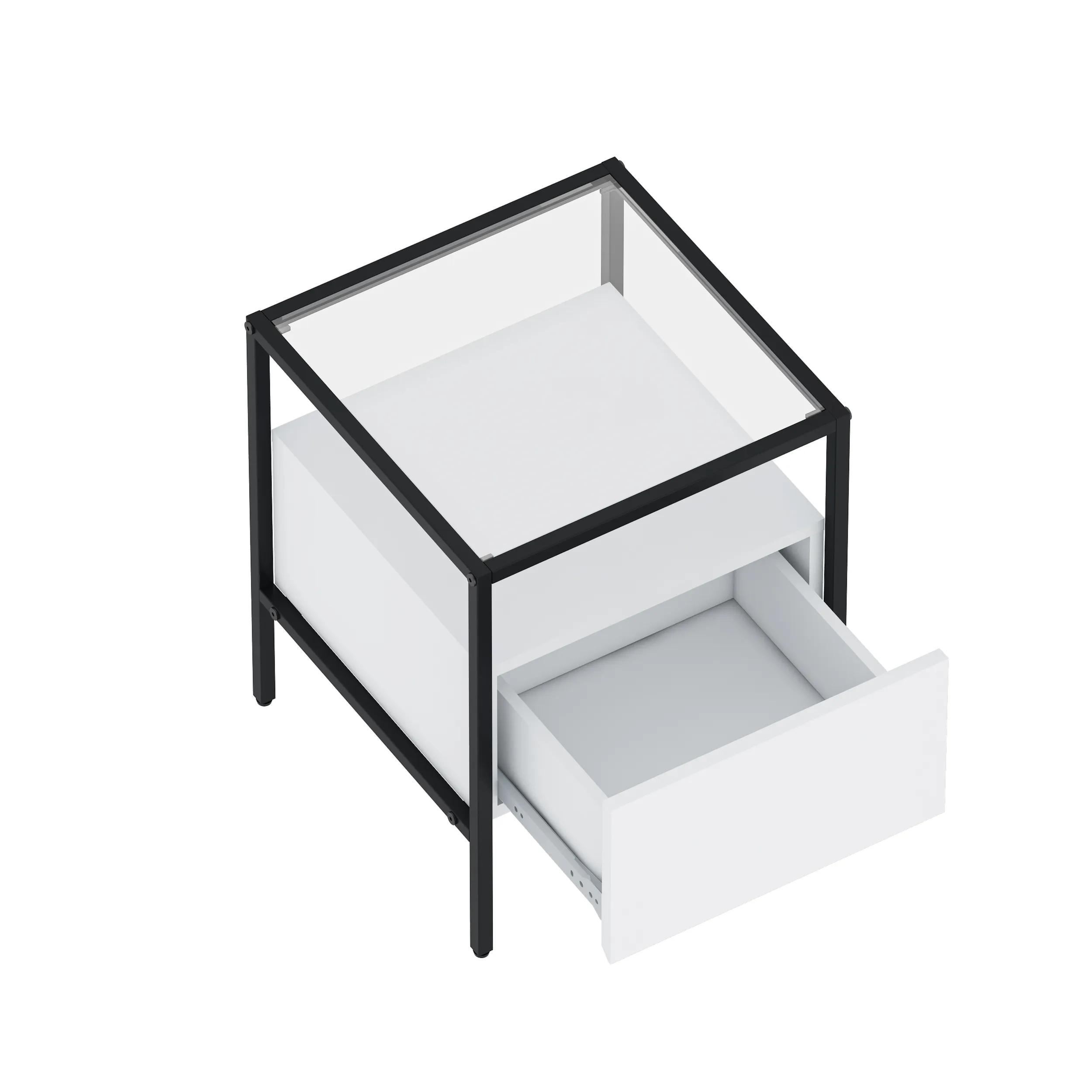 שידת לילה מעוצבת לצד המיטה בצבע לבן בשילוב זכוכית דגם 3284