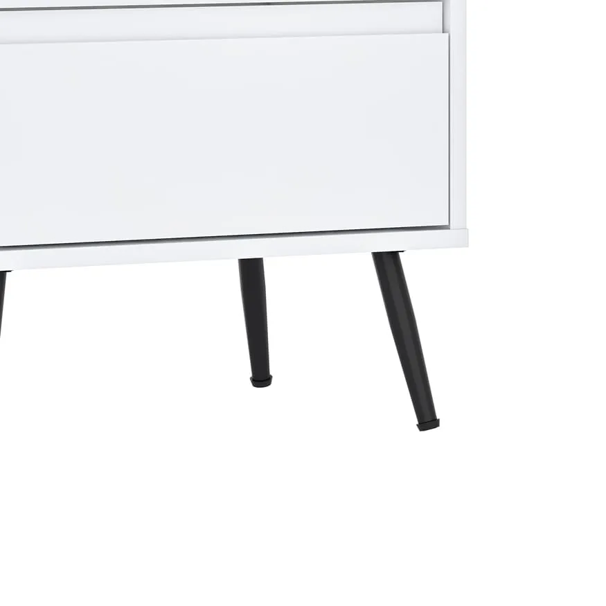 השידה עשויה מ־פלטת MDF איכותית בציפוי PVC לבן חלק. MDF עדיף על סיבית או שבבי עץ, בזכות החוזק והעמידות הגבוהה שלו. כך השידה נשארת יציבה גם בשימוש ממושך. בנוסף, הציפוי הלבן מוסיף לה מראה אלגנטי, קל לניקוי ומתאים למגוון סגנונות עיצוב.